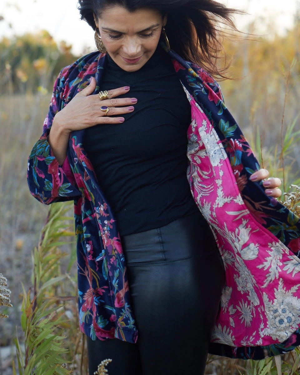 Our jackets are cozy and comfortable, perfect for cooler days and nights, or to wear around the house to uplift your mood.